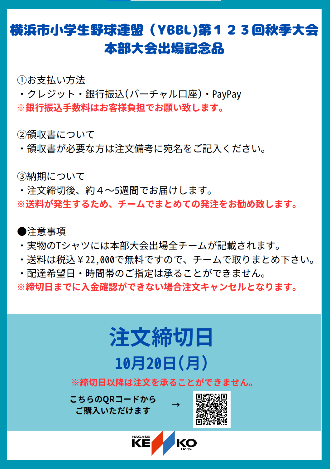 【限定オーダー】第123回YBBL本部大会出場チーム 記念Tシャツ